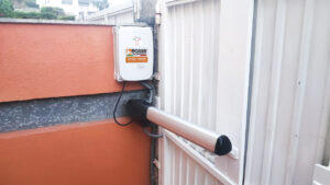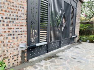 Cổng được điều khiển từ xa bằng remote hoặc nút bấm bên trong nhà.